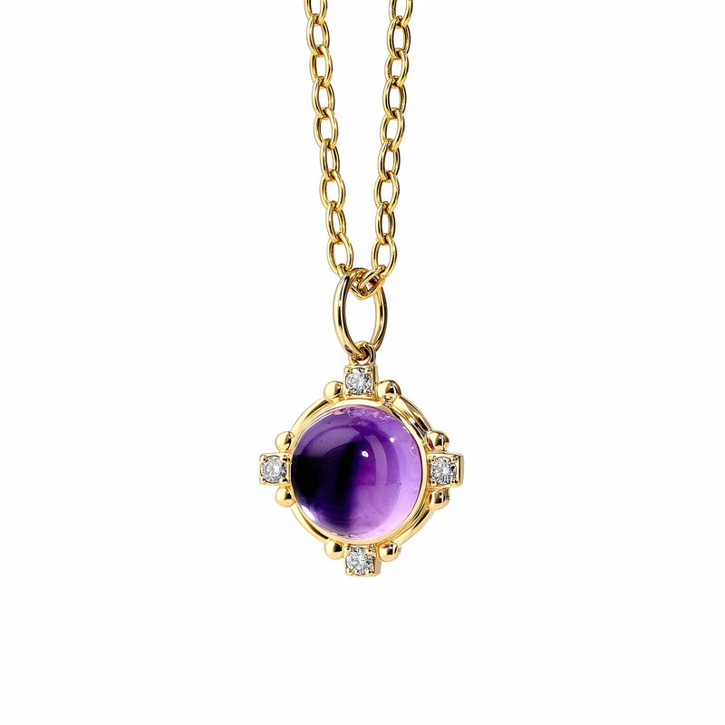 Regal and refined, this Mogul-inspired pendant showcases an exotic gemstone framed by brilliant diamonds. Handcrafted in 18K yellow gold, it captures the grandeur of old-world design with a modern sense of elegance.