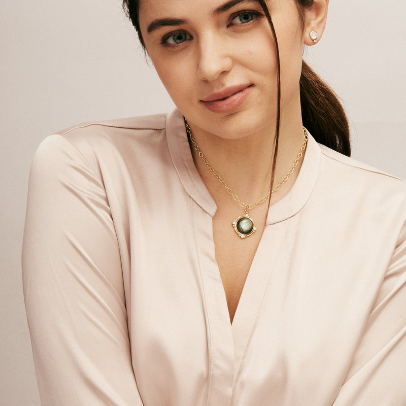 With your choice of center cabochon, this striking and regal piece from our Mogul collection is a go-with-everything accessory that's sure to become your new staple piece. The 18K yellow gold setting is enhanced with four diamond accents and beaded details.