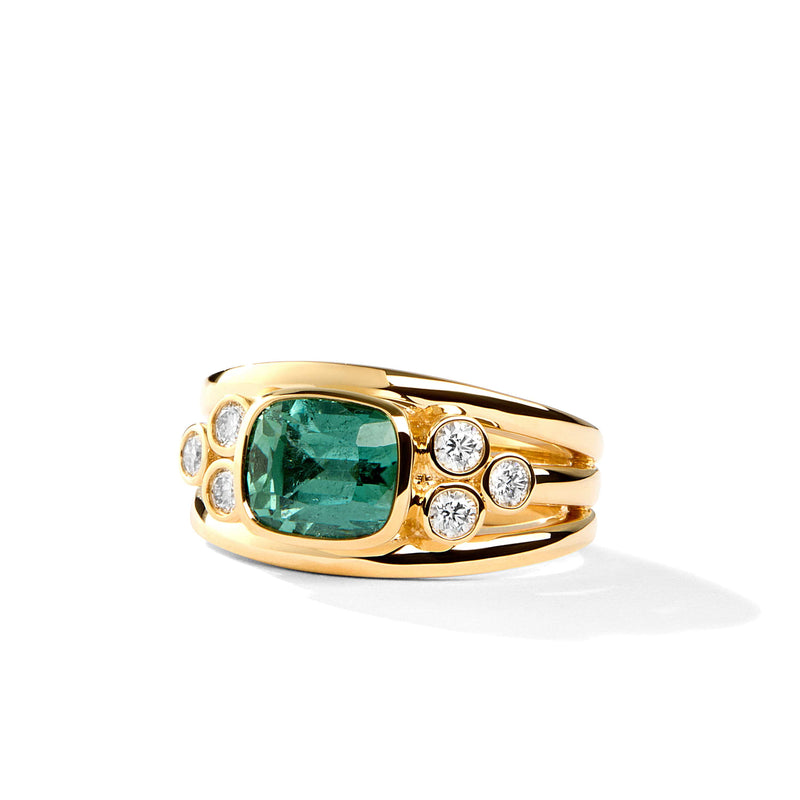 18K Yellow Gold with Green Tourmaline and Diamonds