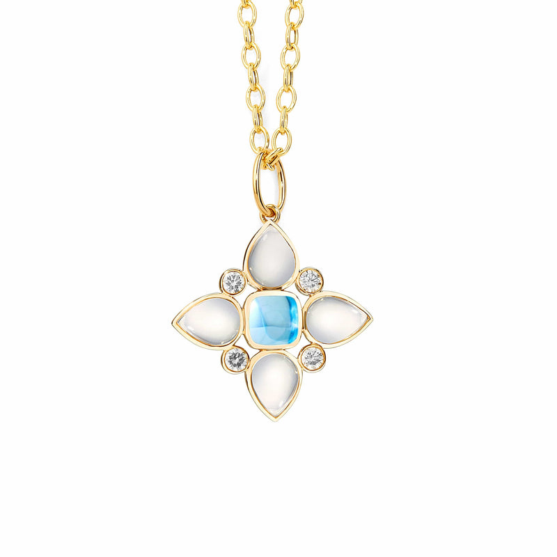 18K Yellow Gold with Moon Quartz, Amethyst and Diamonds
