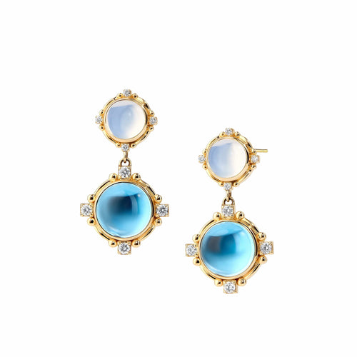 Moon Quartz & Blue Topaz Earrings